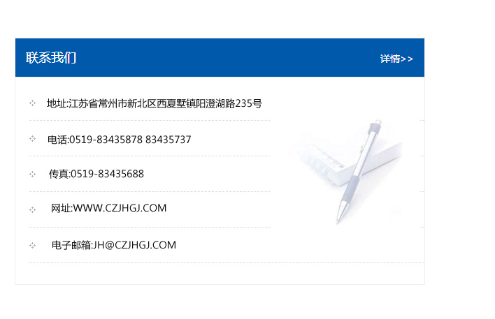 傳真:0519-83435688    郵編:213135    網址:WWW.czjhgj_com.wuhshitong.com    電子郵箱:JH@czjhgj_com.wuhshitong.com